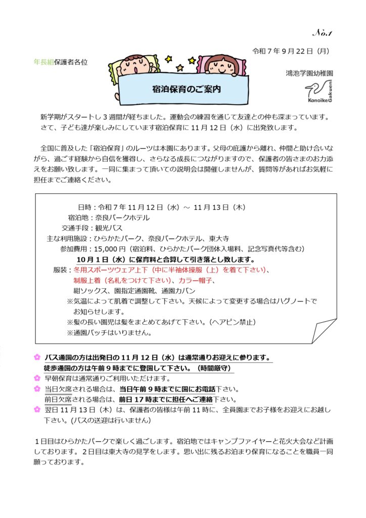 【年長組】宿泊保育のご案内