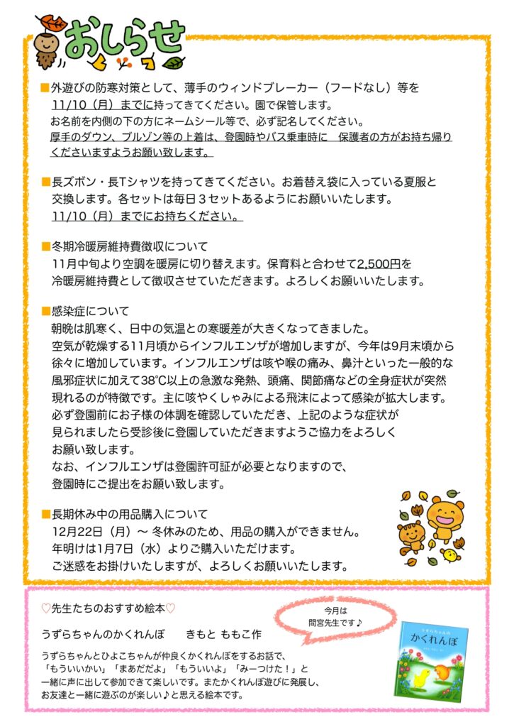 【幼稚園/プティ】冬休み朝ホームバステスト運行のお知らせ