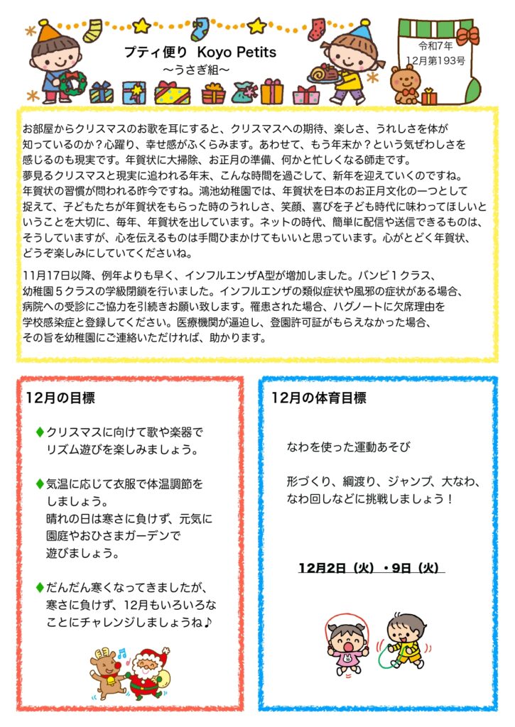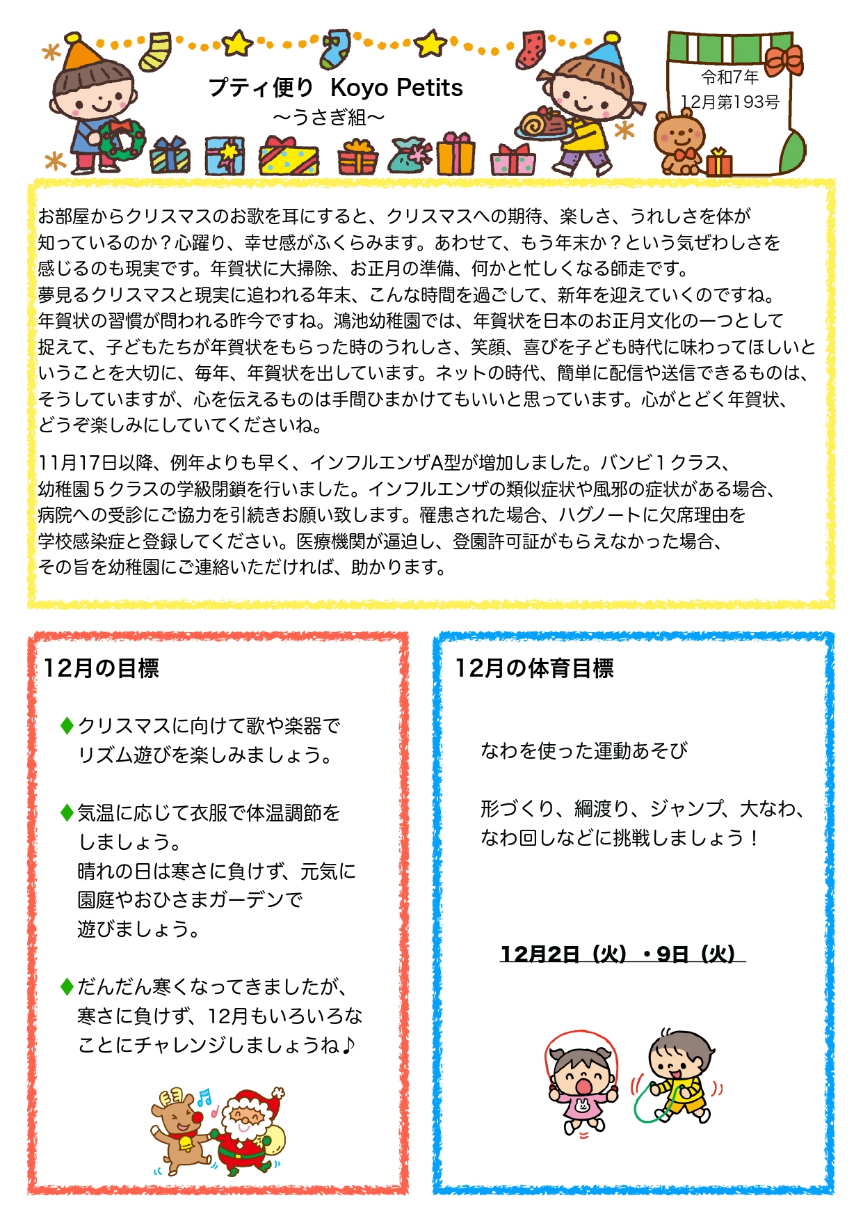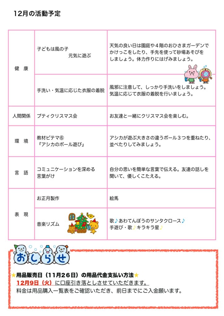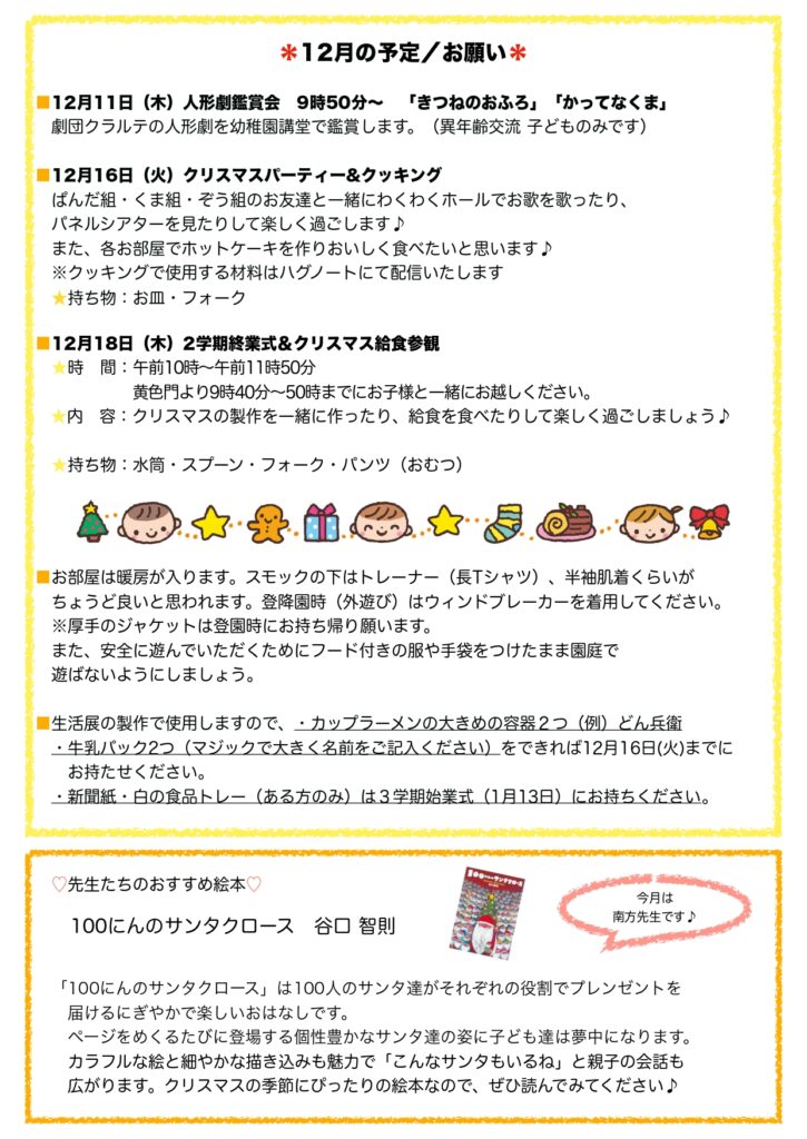 【プティ/うさぎ組】クリスマスクッキングのお知らせ