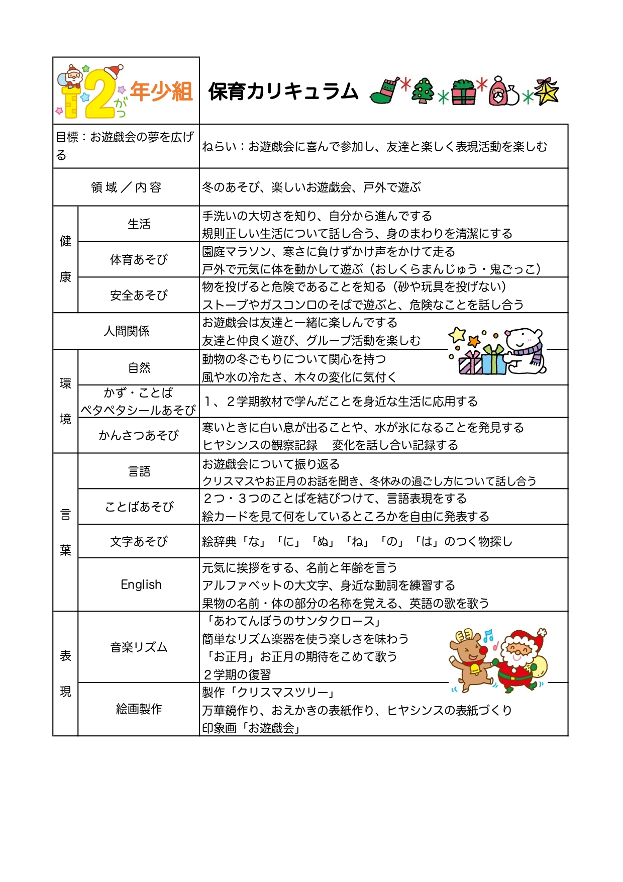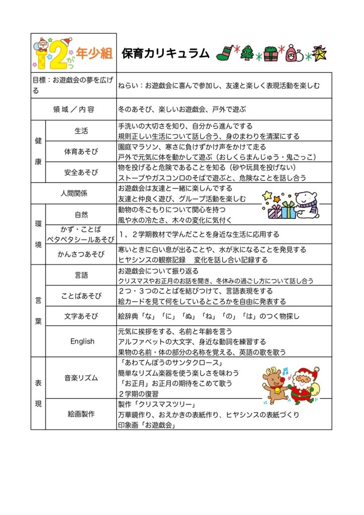 【幼稚園/プティ】令和7年度12月給食献立表(普通食/普通食アレルギー/アレルギーB・C)