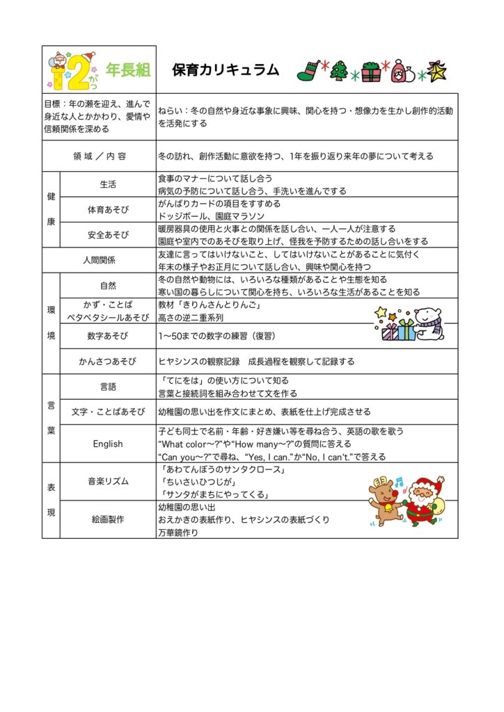 【年長組】12月カリキュラム