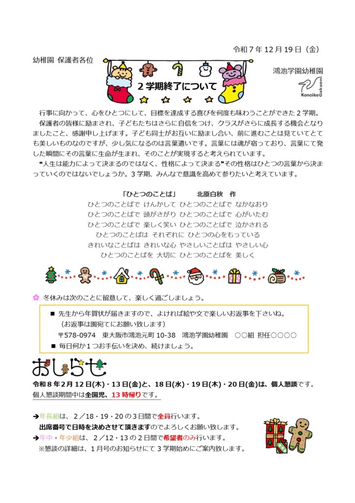 【幼稚園】2学期終了について
