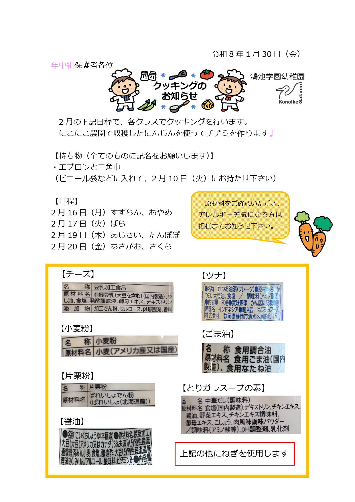 【年中組】クッキングのお知らせ