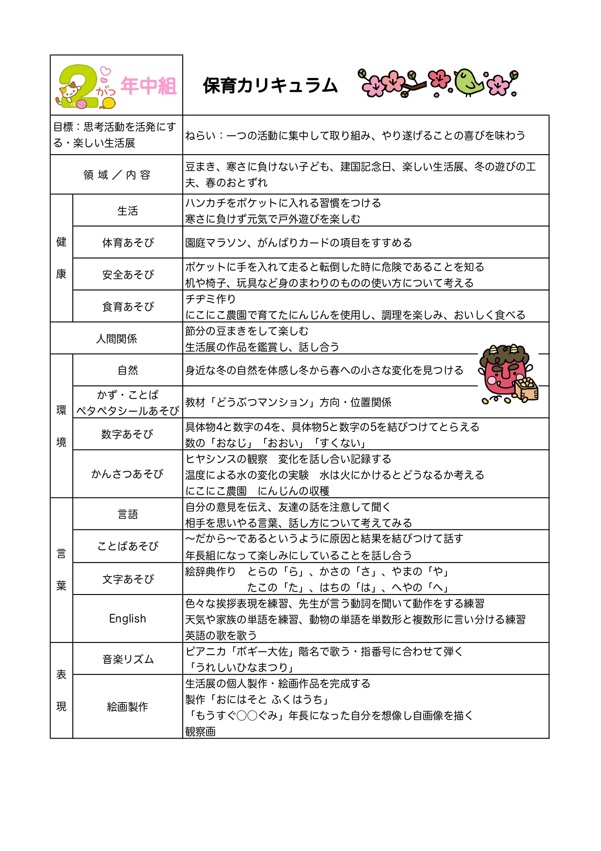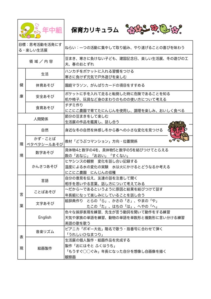 【幼稚園/プティ】2月給食献立表(普通食/普通食アレルギー/アレルギーB・C)