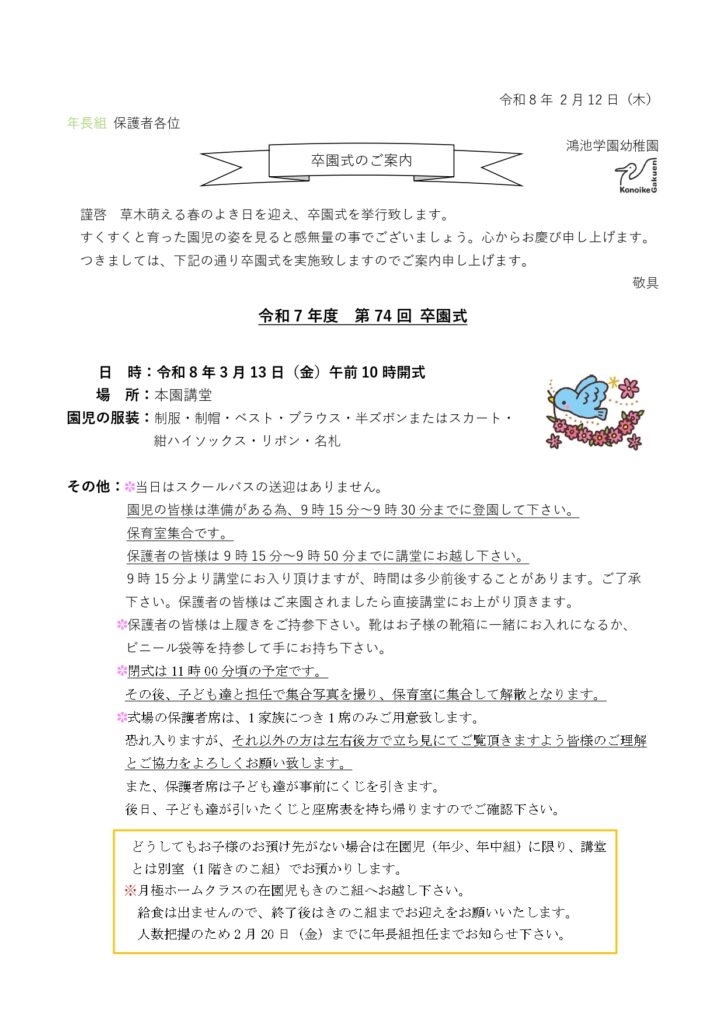 【年長組】卒園式のご案内