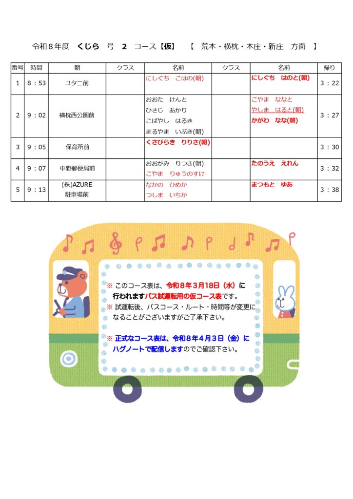 【令和8年度バス通園の方/年中・年少組】バス試運転のお知らせとお願い