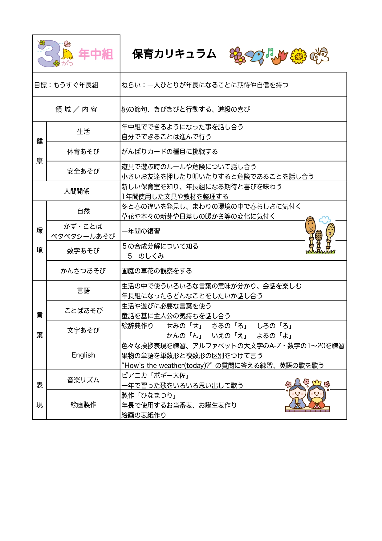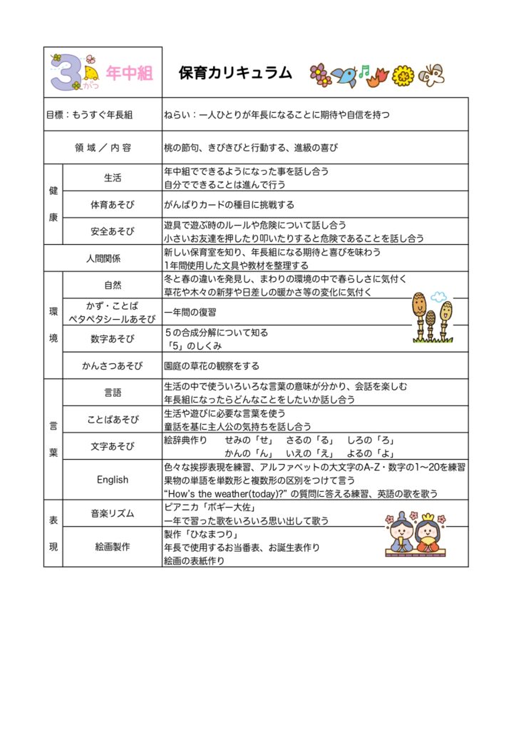 【年中組】3月カリキュラム