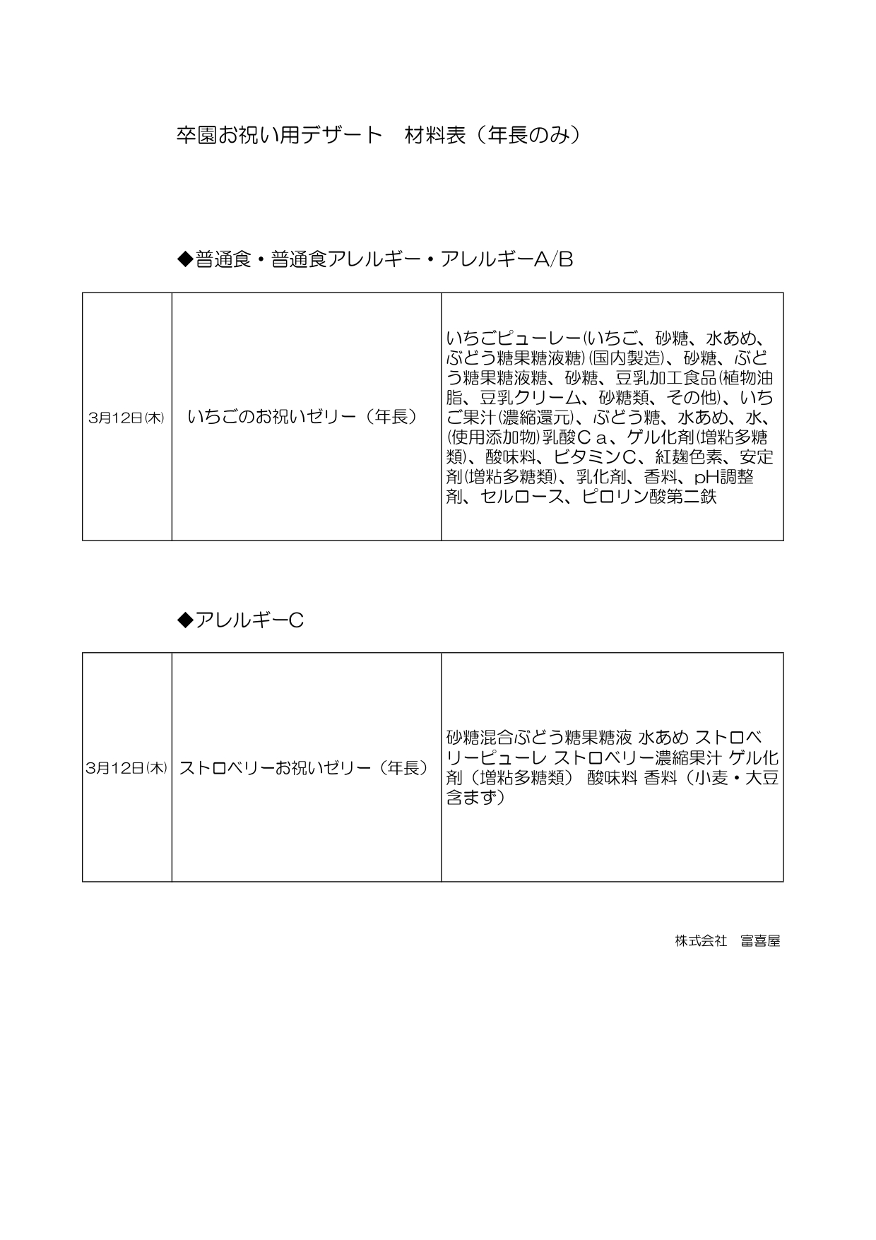 【年長組】3/12(木)お祝いデザートゼリー材料表