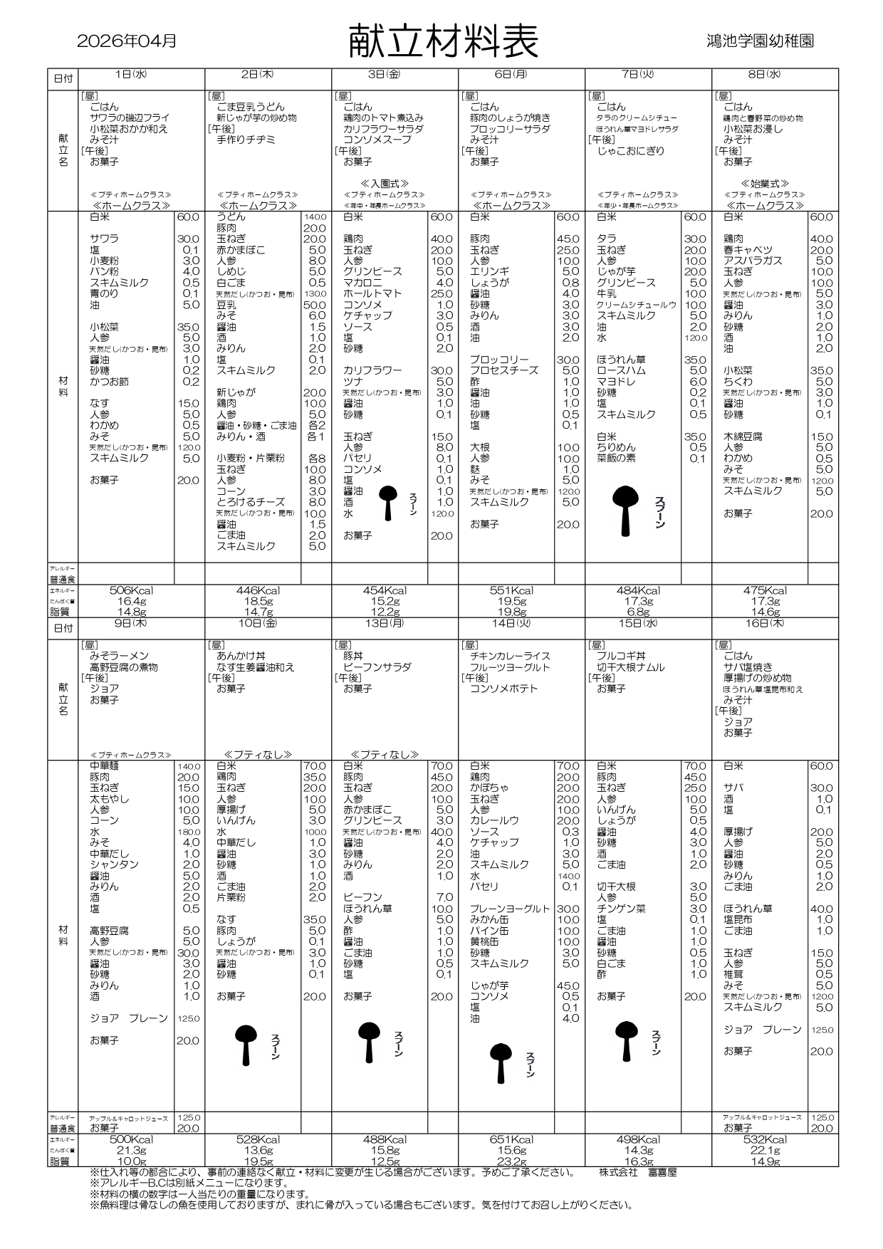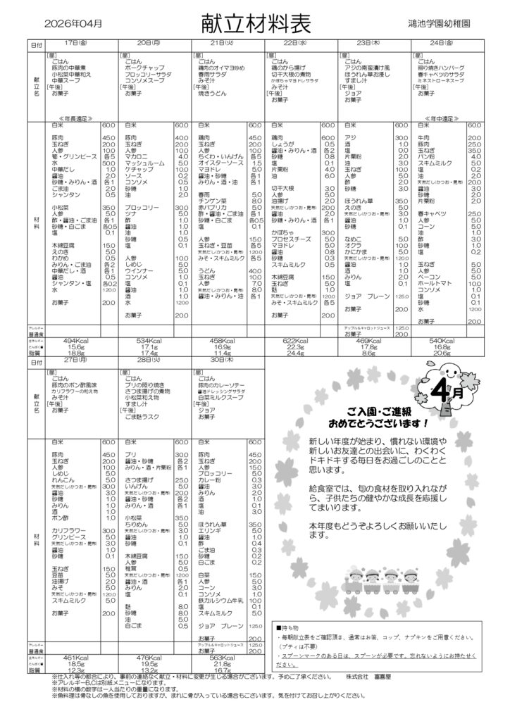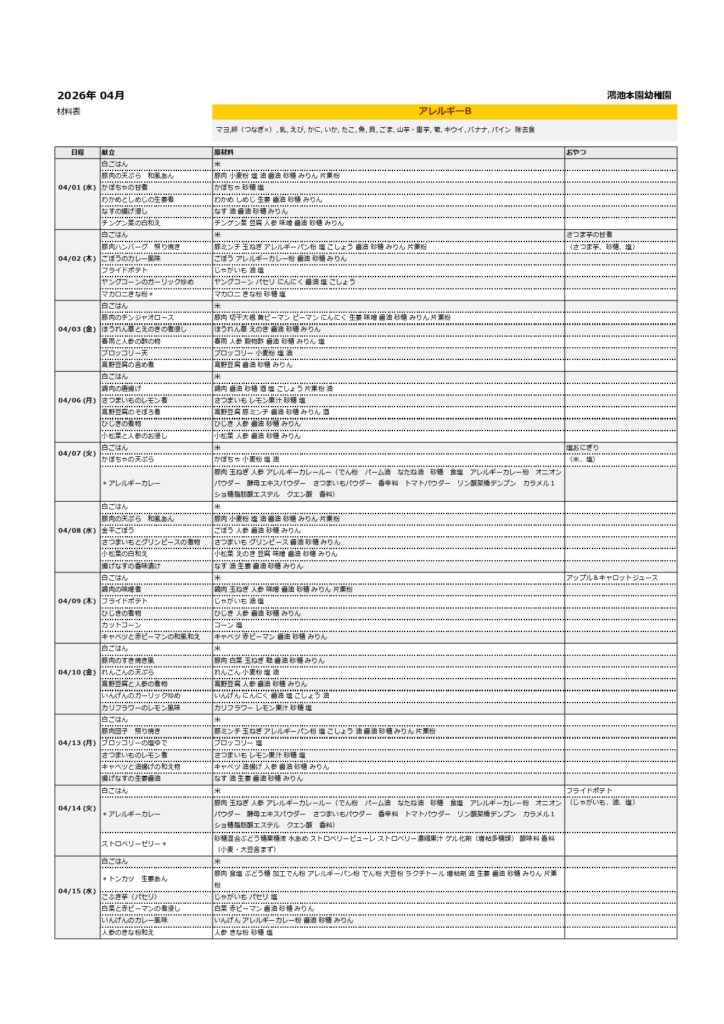 【令和8年度4月給食献立表/普通食/普通食アレルギー/アレルギーB】