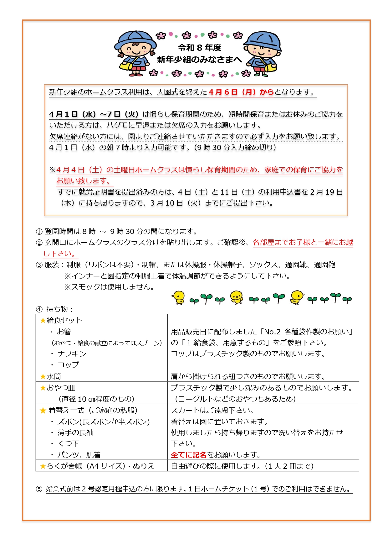 【新入園児】ホームクラスの利用について