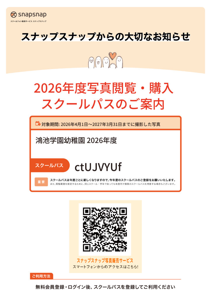 【幼稚園】スナップスナップ写真2026スクールパスについて