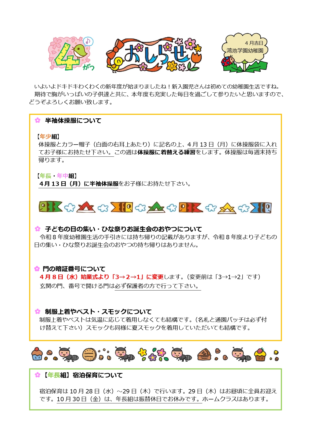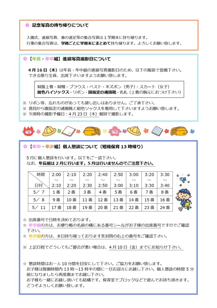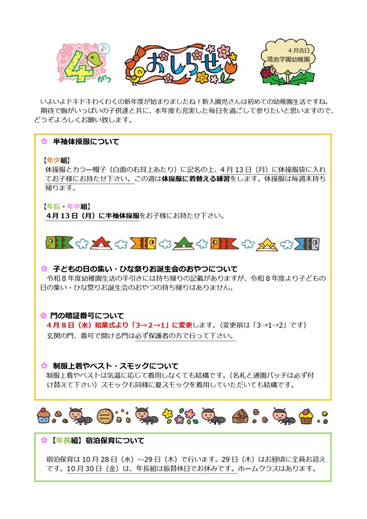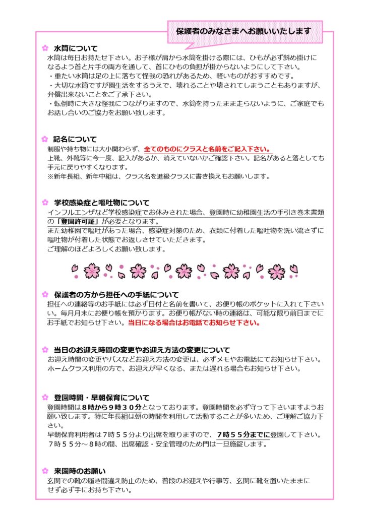 【幼稚園】4月おしらせ