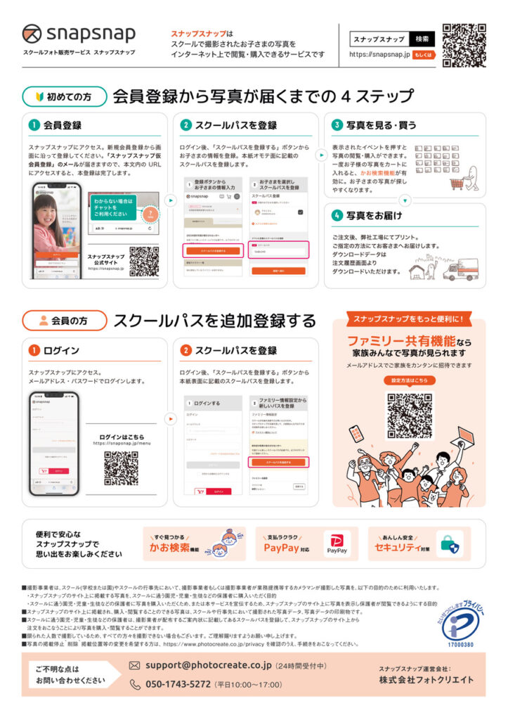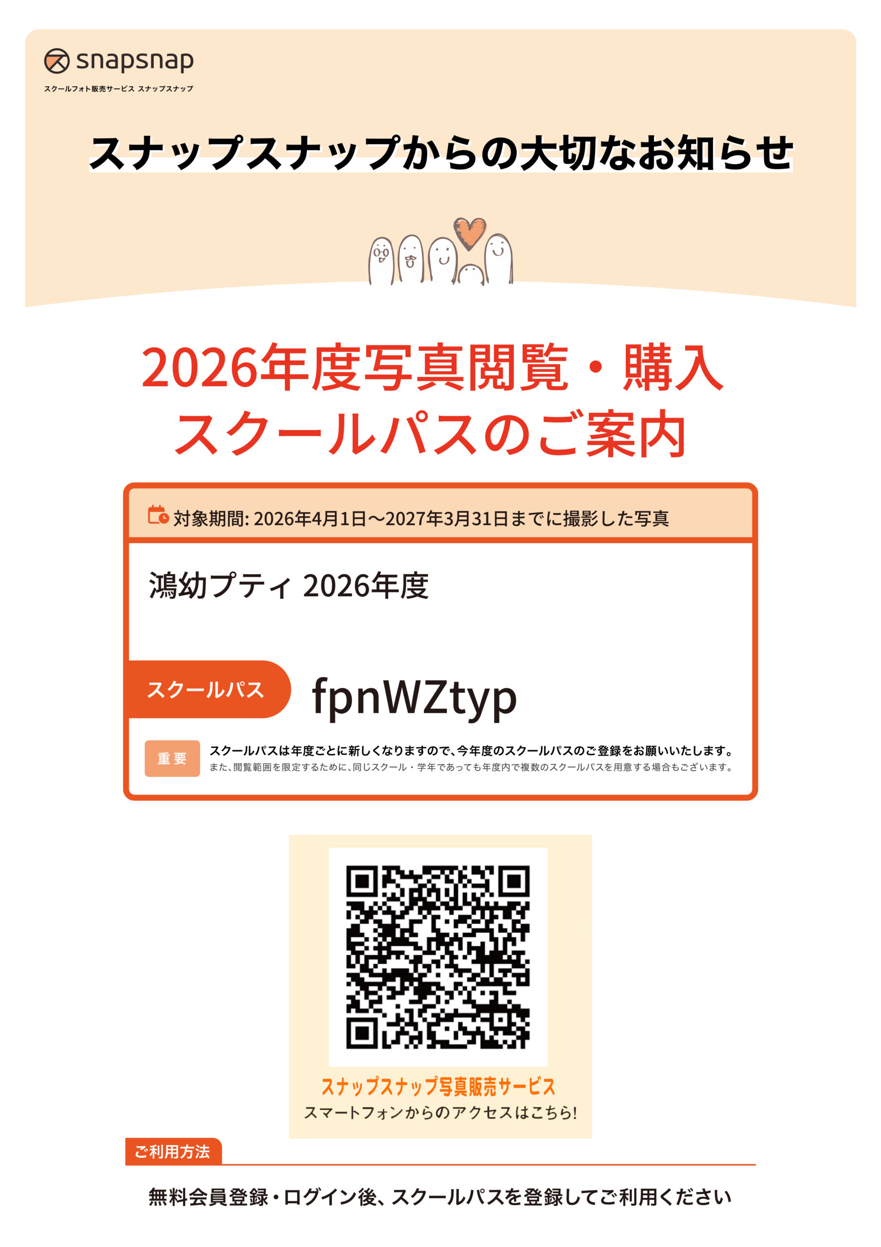 【幼稚園】スナップスナップ写真2026スクールパスについて