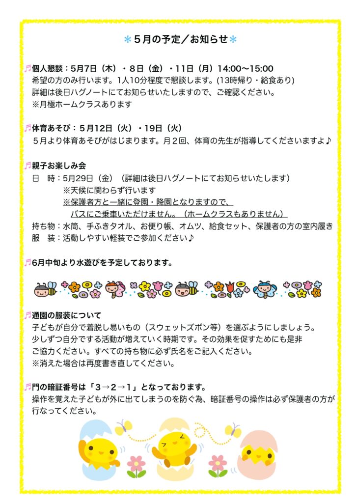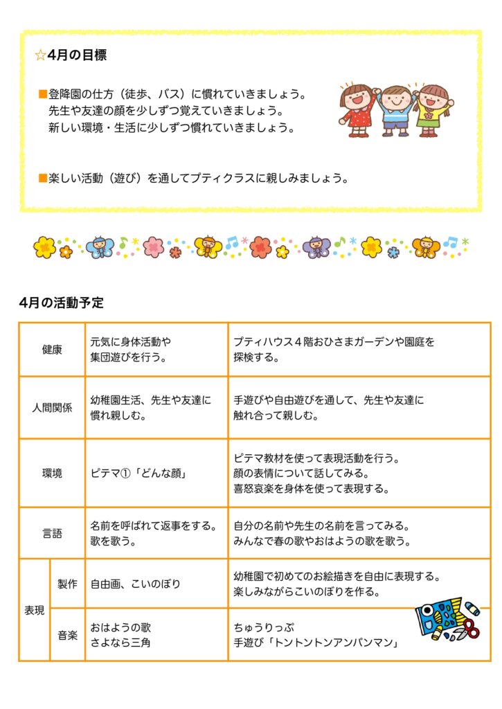 【プティ】1学期カレンダー