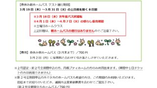 【1号認定】春休みホームクラスのお知らせ