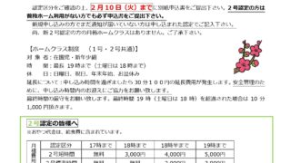【新2号認定】春休みホームクラスのお知らせ