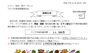 【ピアノ・剣道・習字・ダンスクラブ在籍者の方へ】冷暖房維持費のお知らせ