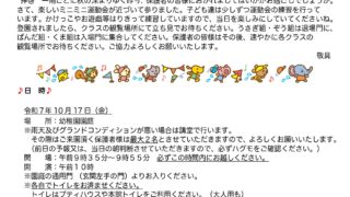 【プティ/うさぎ組】ミニミニ運動会のお知らせ