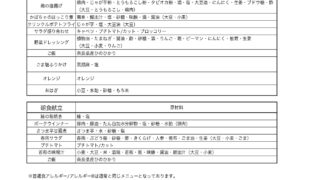 【年長組】宿泊保育献立メニュー(普通/普通食アレルギー/アレルギーB)
