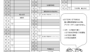 【幼稚園】令和7年度3学期 鴻幼カレンダー